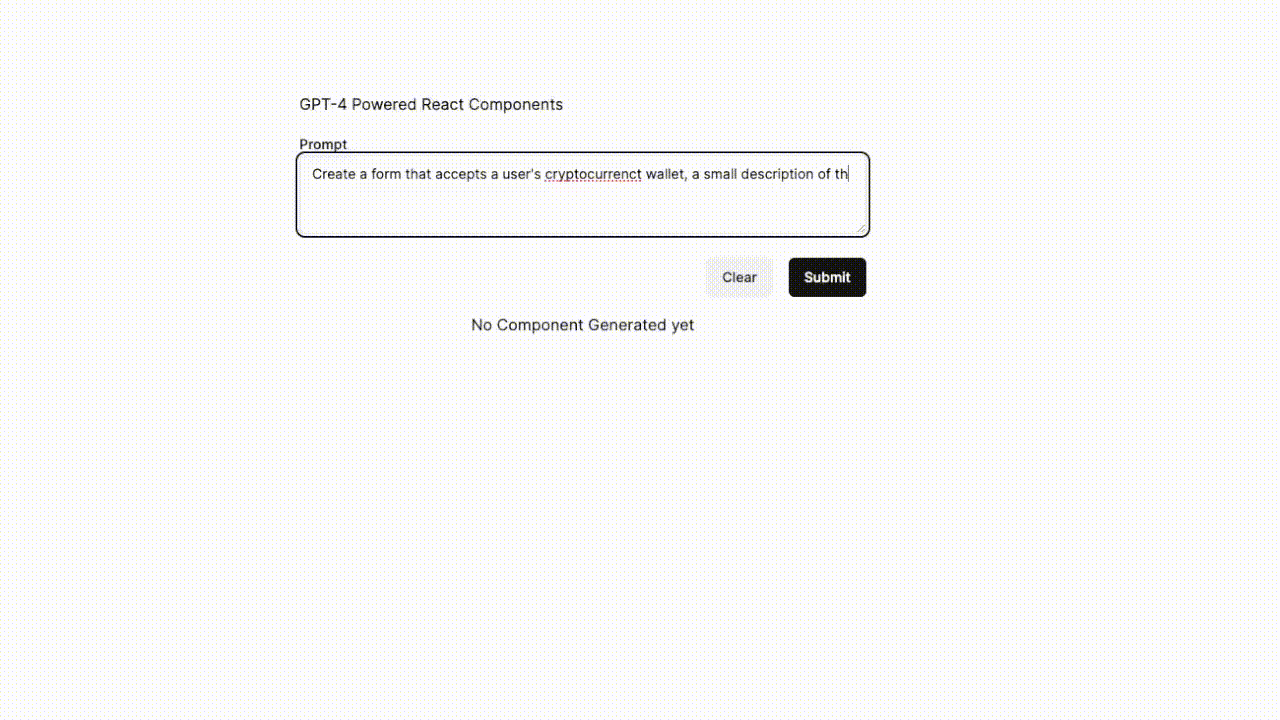 One eventful friday evening later, I ended up putting together a small prototype which uses context-aware RAG and pydantic to generate valid NextJS Code based on a user prompt which you can see below.