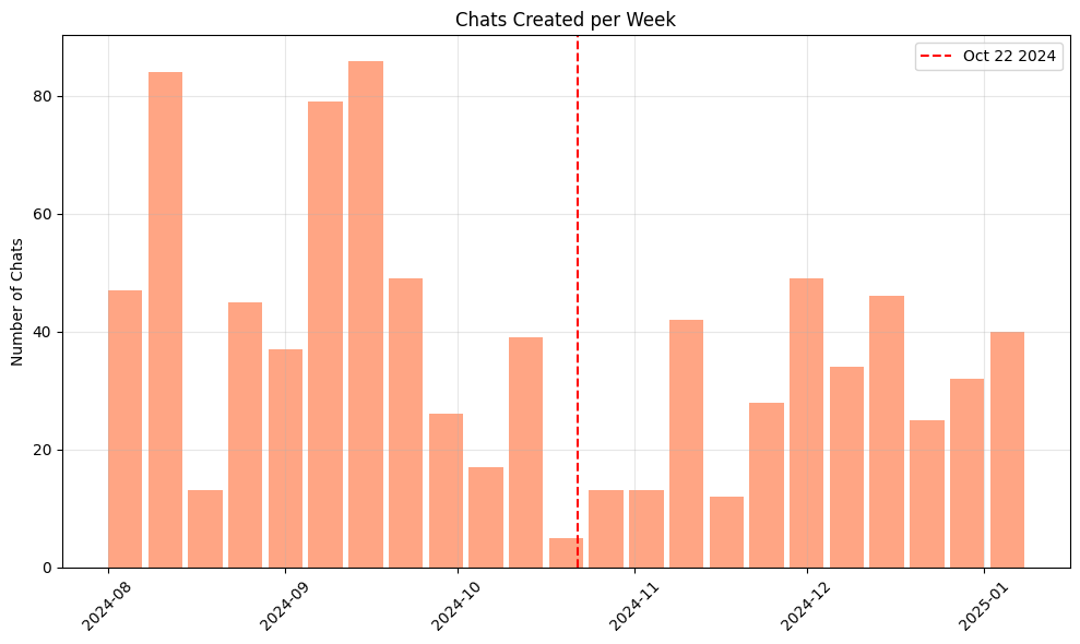 Initially, I was having about 80 chats per week, though that's dropped a good amount lately. I do attribute this to the fact that I've been using Cursor more for programming tasks.