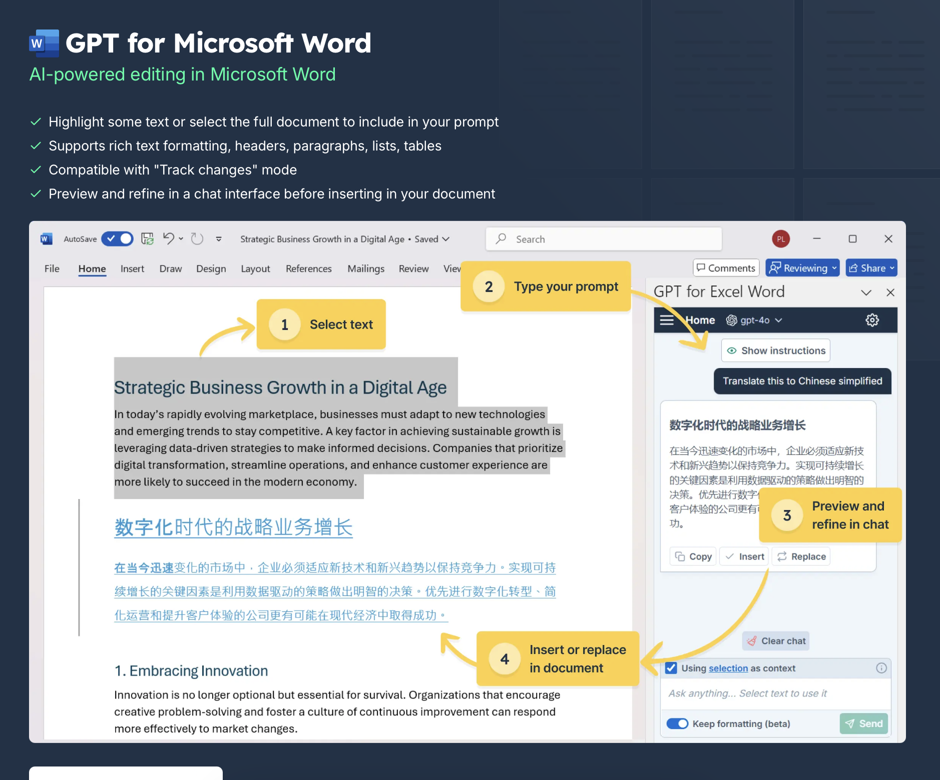 GPTForWork is a great example of meeting users where they're at by integrating directly into Microsoft Office Tools and Google docs/sheets.