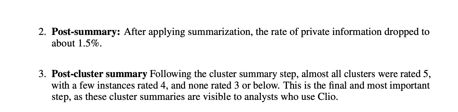 Basic PII Removal : In Anthropic's case, they have a specific PII classifier that they use to remove PII. However, this is a very basic classifier that only looks at the user request and task description. A production system should invest time into building out a more sophisticated PII classifier that can be used to remove PII from the data.